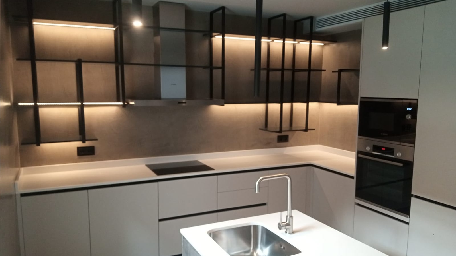 Encante-se com uma cozinha meticulosamente planejada, envolta em aglomerado laminado de alta qualidade, destacando-se com um imponente topo em mármore branco, proporcionando uma atmosfera de luxo e refinamento incomparáveis.