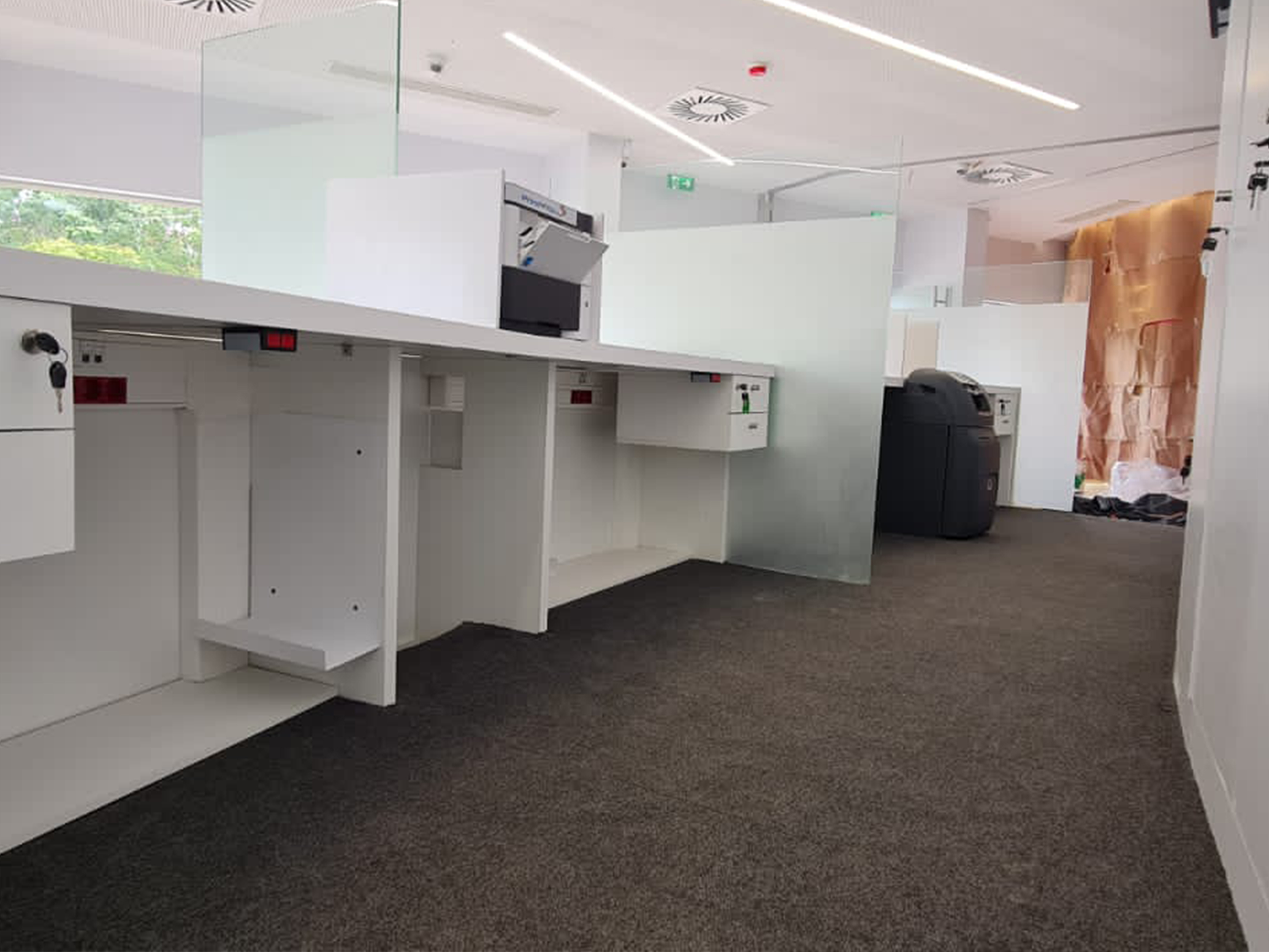 O balcão de BIM de Massinga foi concebido com uma combinação cuidadosa de materiais de alta qualidade e design moderno. Projetado para otimizar a interação e o fluxo de trabalho, o ambiente oferece conforto aos usuários, resultando em maior eficiência e produtividade
